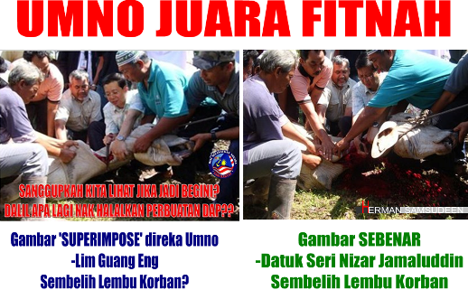 Kalau satu hari nanti lim guan eng peluk Islam, tak mustahil dia pun boleh sembelih lembu korban...tapi buat masa la nie, memang tu superimpose ja meh! cilakak unaited meleis nasyional organaisesyen!!!!!