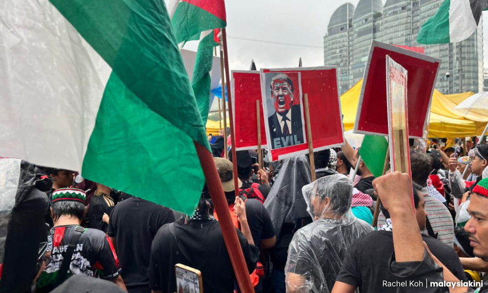 Hujan yang turun sejak pagi tadi di ibu negara tidak menghalang peserta himpunan anti-Israel untuk turun ke jalan raya bagi menyatakan bantahan.